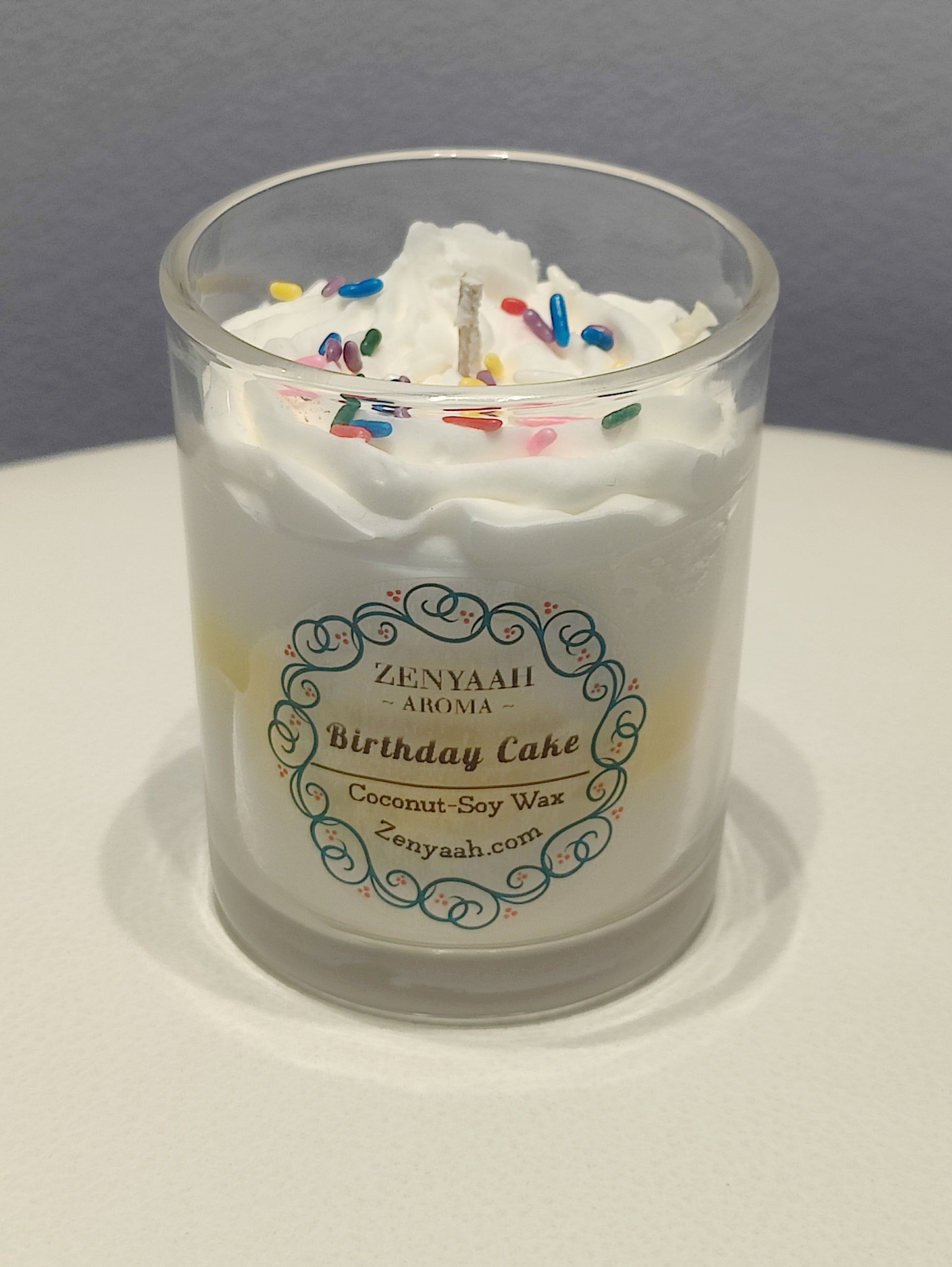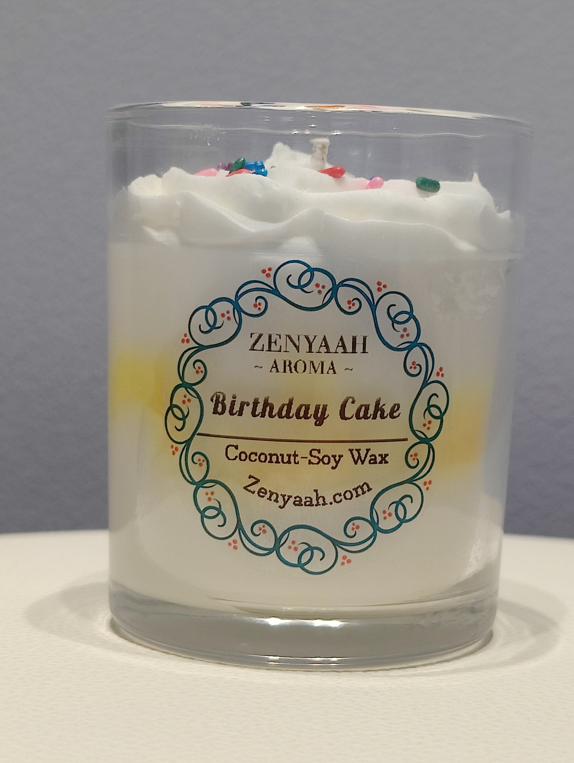 At the heart of our commitment to quality, the candle features a cotton core wick, ensuring a clean and consistent burn that lets you revel in the delightful birthday cake aromas without a worry. But that's not all! Adorned with a whimsical marble pattern in cheerful yellow, this candle is a visual delight that adds a touch of festivity to any setting. Crowned with an enchanting whipped cream design, adorned with a cascade of rainbow sprinkles, it promises not just a visual feast but an experience as joyous and colorful as it looks.