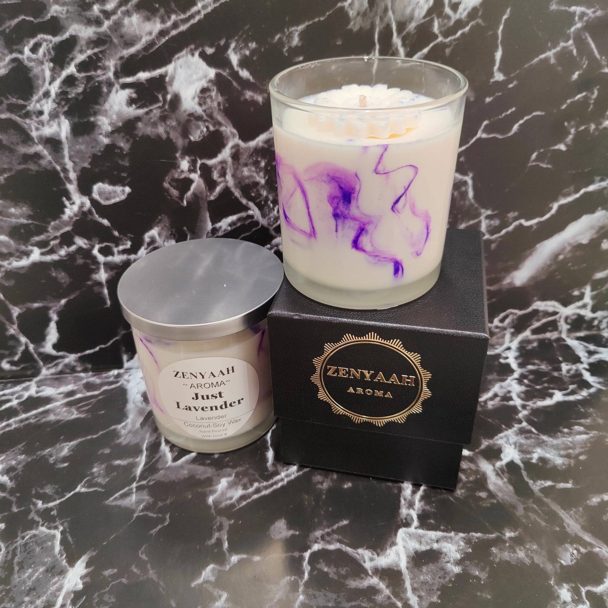 Marbling will vary from what is seen in photos as each candle is handmade and unique.