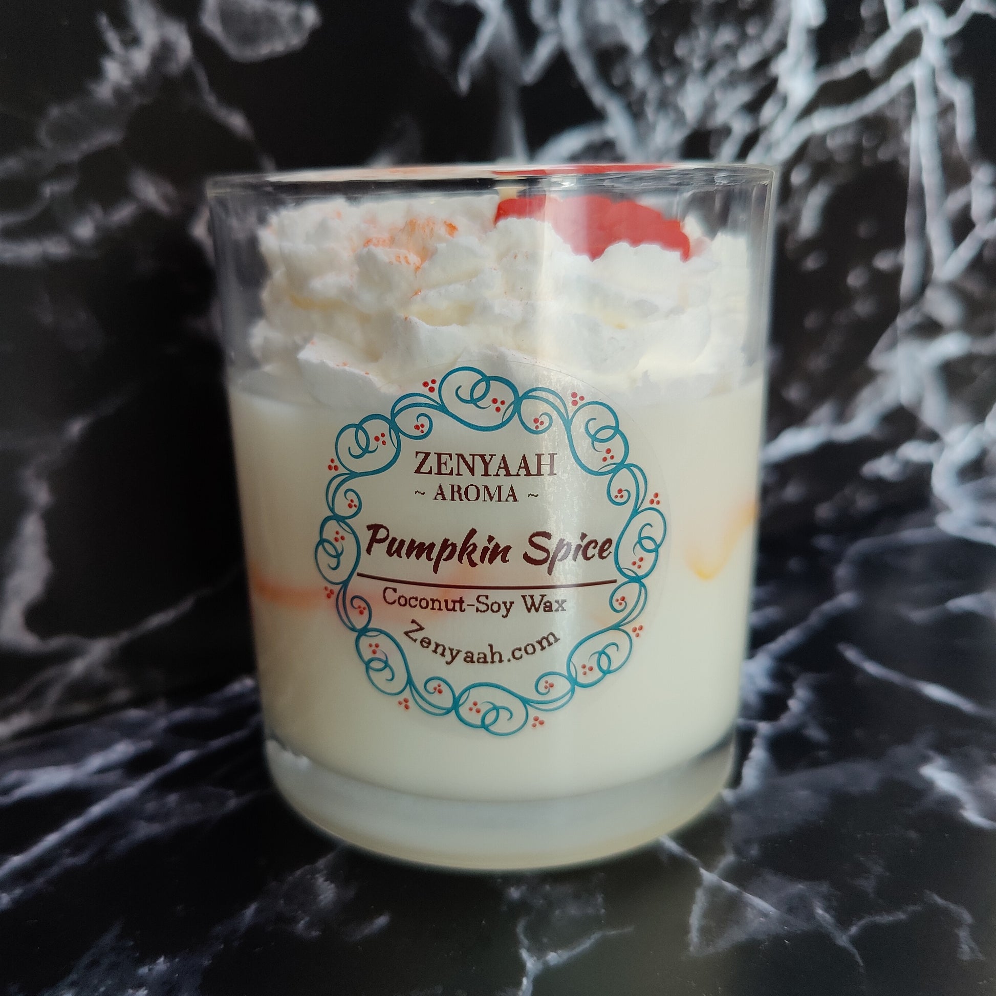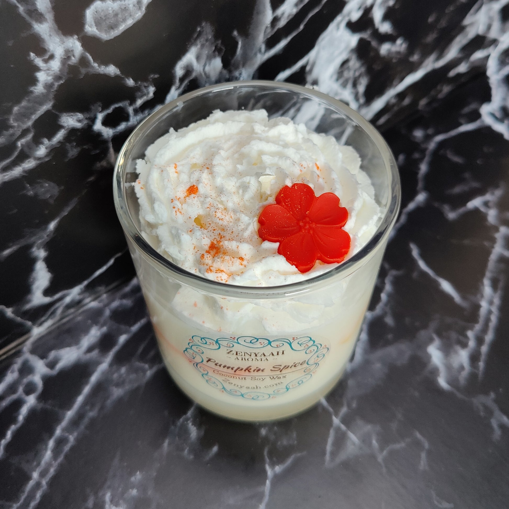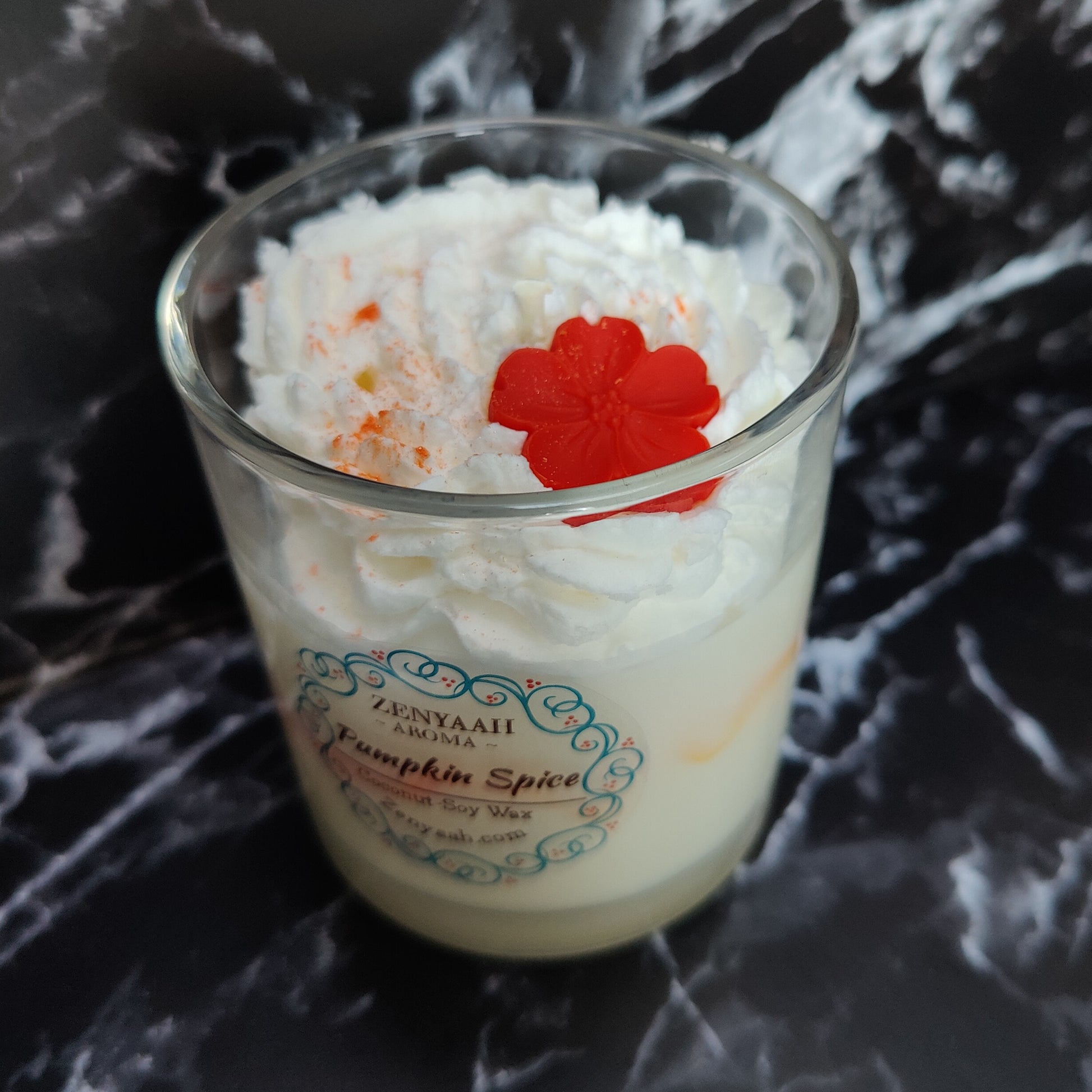 At the core of our commitment to quality, the candle boasts a cotton core wick, ensuring a clean and efficient burn that allows you to savor the captivating aromas without a worry. But the charm doesn't end there! Adorned with an enticing marbling of radiant orange, this candle is a visual masterpiece that adds a touch of elegance to any setting. Topping it off is a delightful whipped cream appearance, complete with a delicate flower and a sprinkle of glistening glitter, creating a captivating visual delight that promises an experience as sweet as it looks.