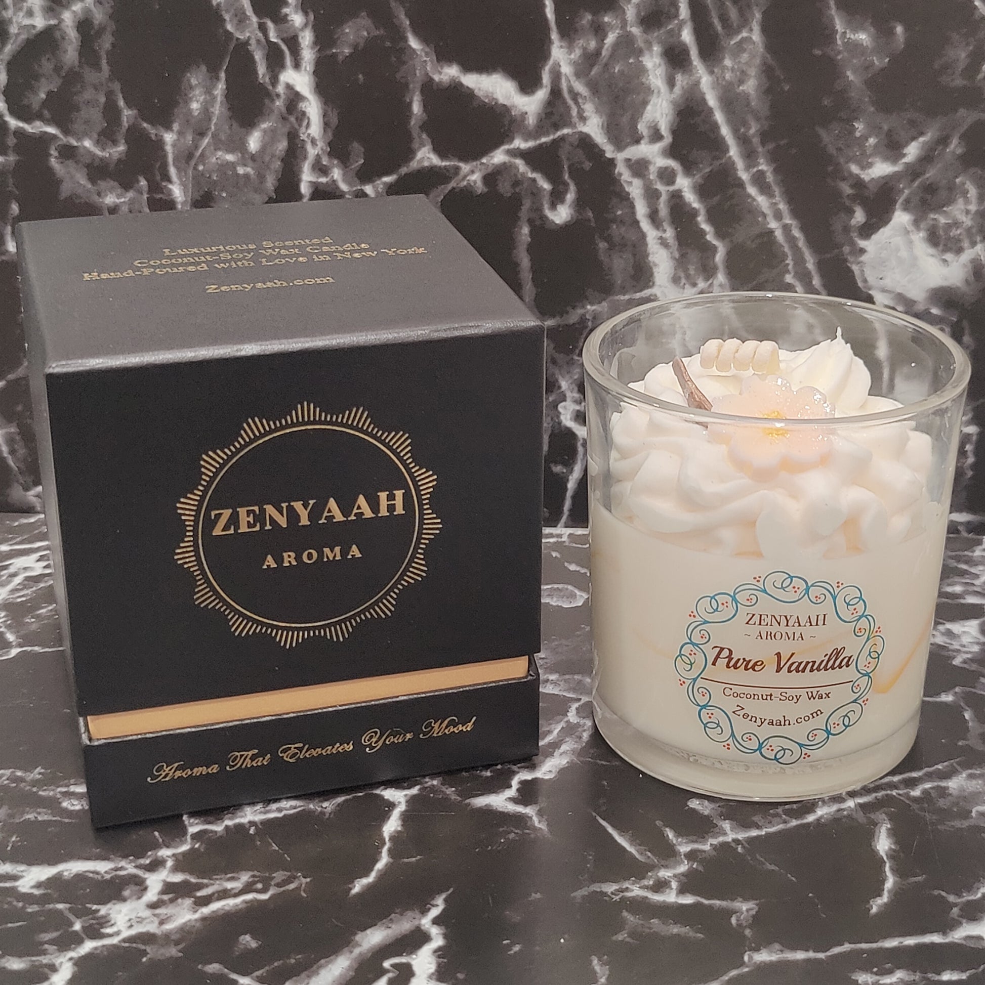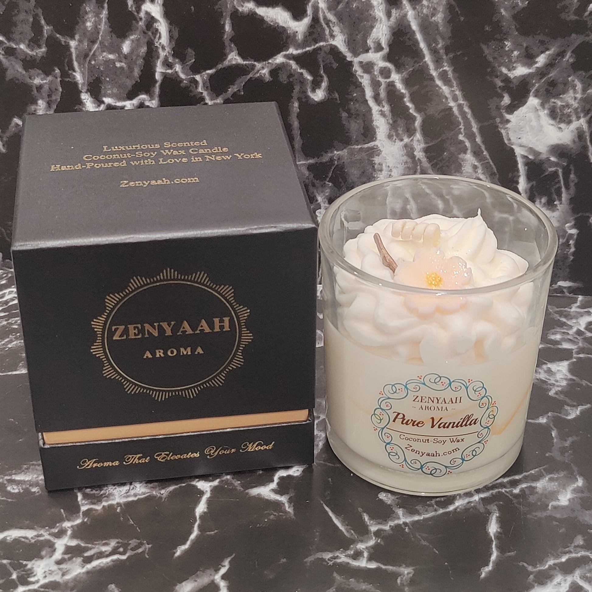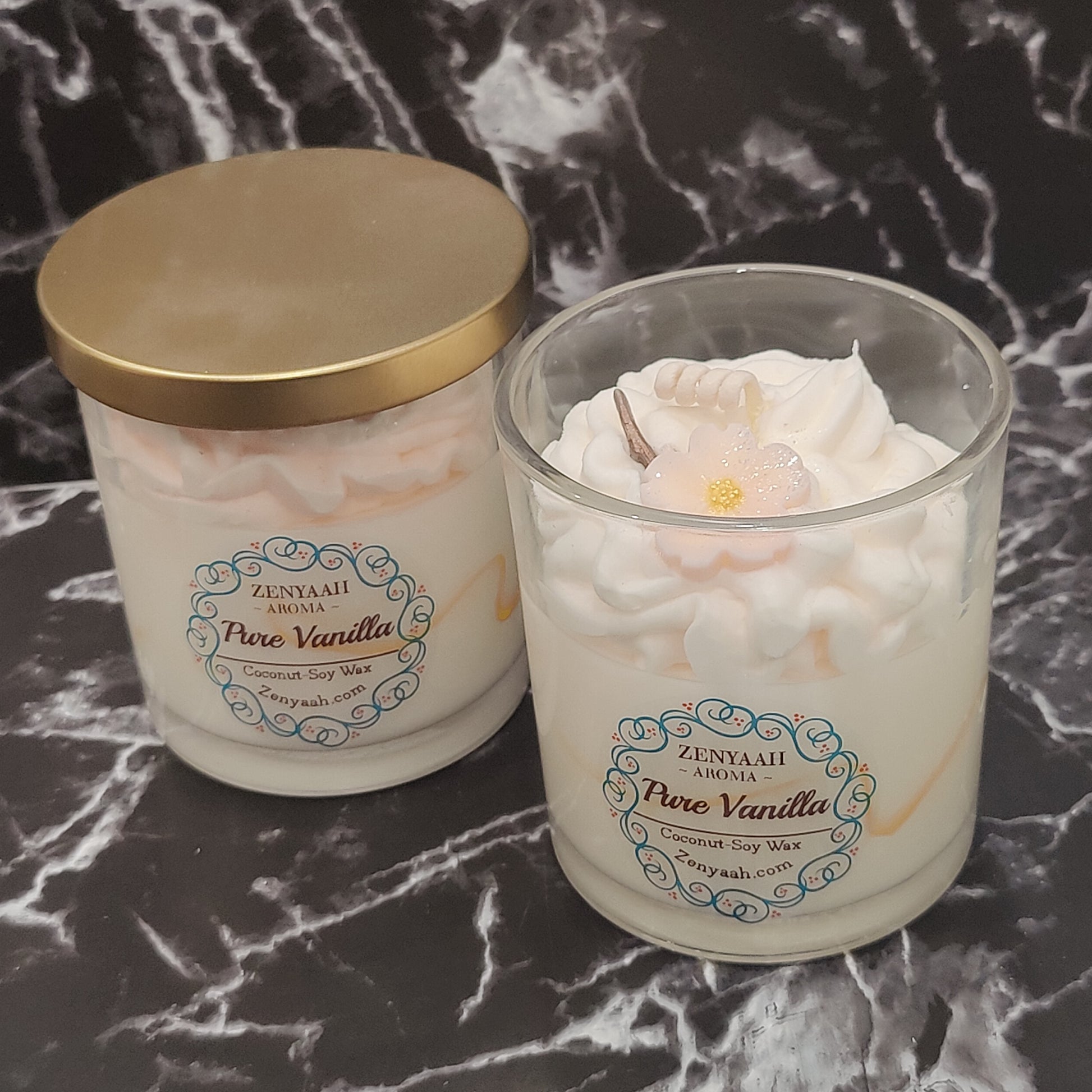 At the heart of our dedication to quality, the candle features a cotton core wick, ensuring a clean and efficient burn, allowing you to savor every moment of tranquility without a worry. But the allure doesn't end there - behold its artful appearance! Decorated with a charming whipped cream look, adorned with delicate flowers on top, this candle is a visual masterpiece that adds a touch of elegance to any setting.