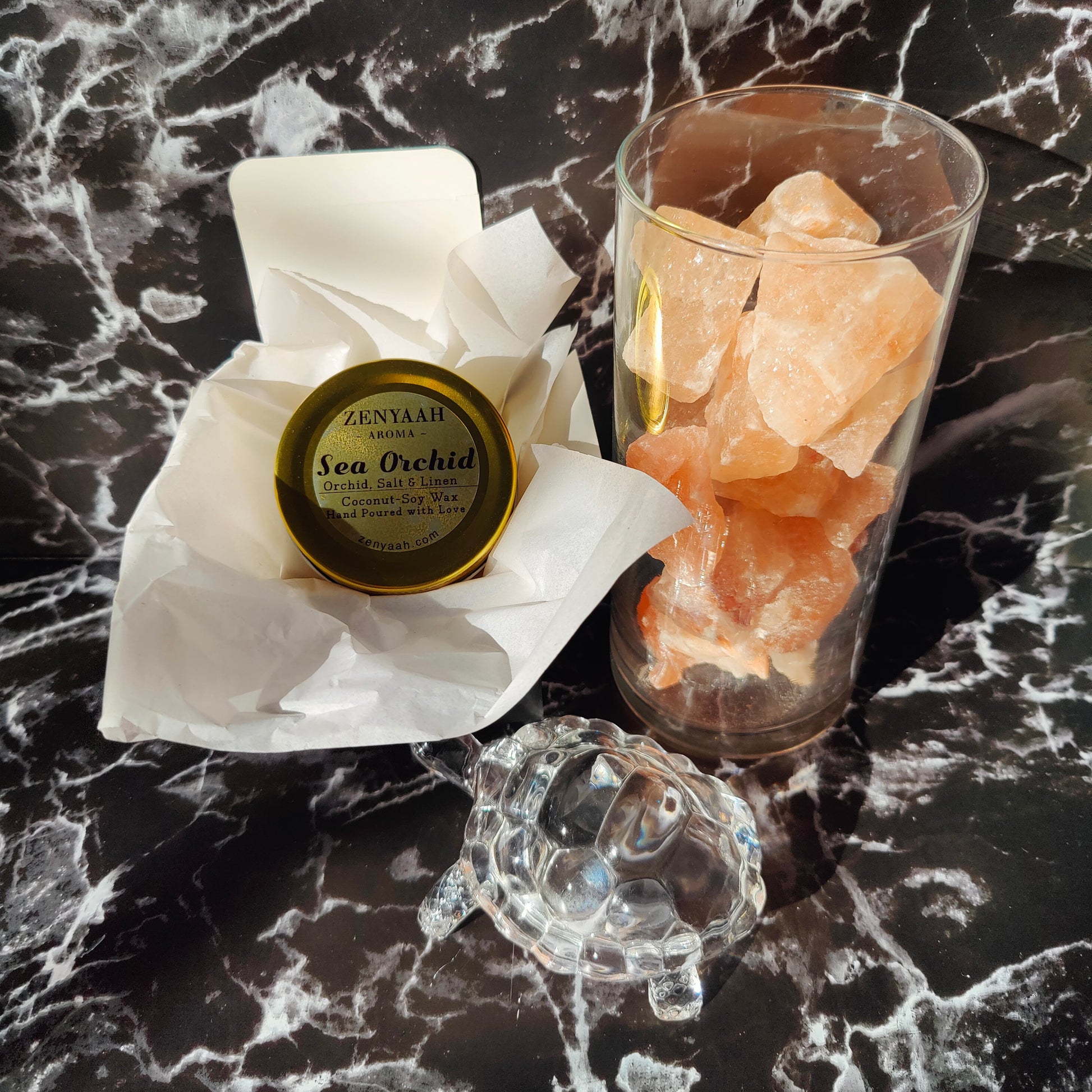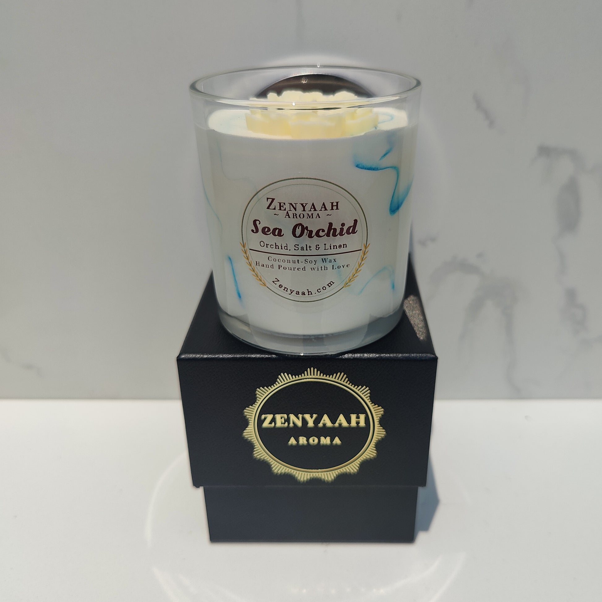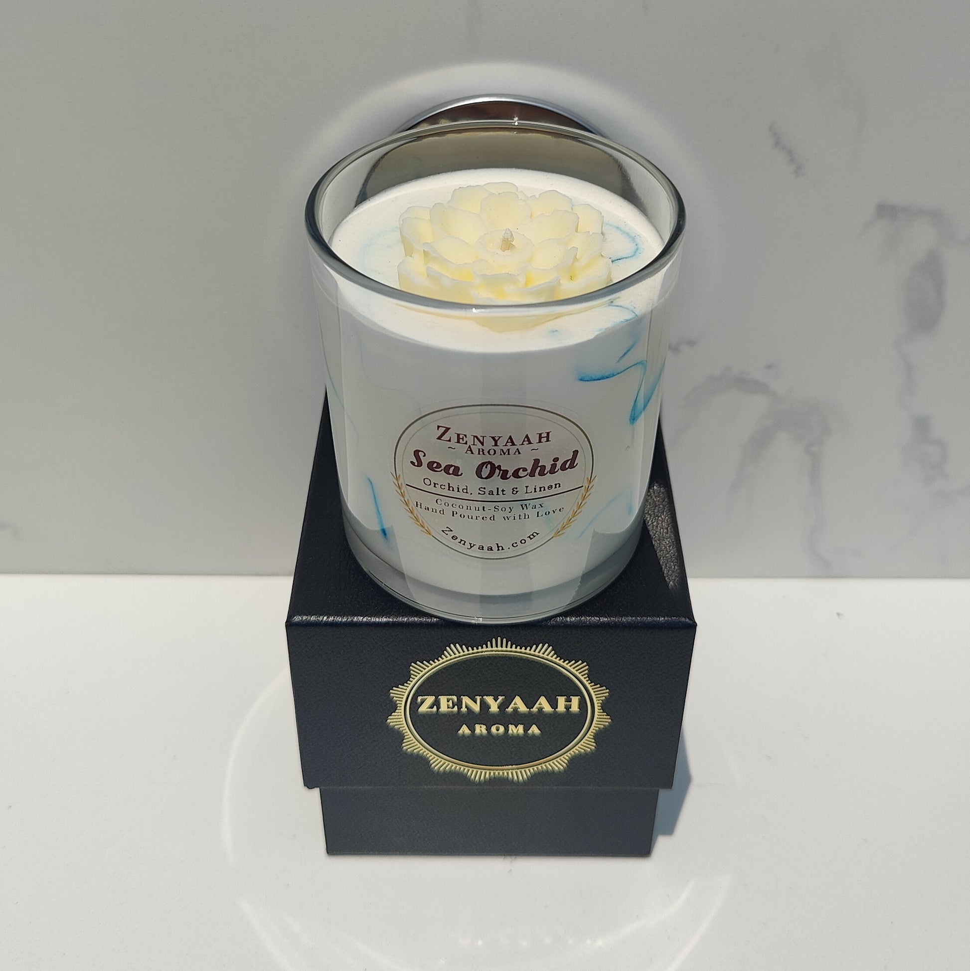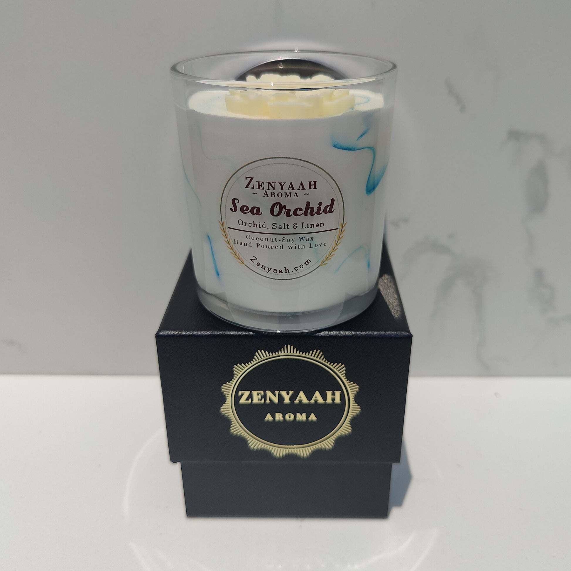 Prepare to be enchanted by the mesmerizing allure of our artisanal hand-crafted candle, meticulously curated to awaken your senses and elevate your space. Crafted with utmost care, this gem is made from sustainably sourced and eco-friendly coconut-soy wax, a testament to our dedication to both your well-being and the environment. Immerse yourself in a harmonious blend of Orchid and Salt, with a subtle hint of Linen, creating an ambiance that evokes a serene coastal retreat.