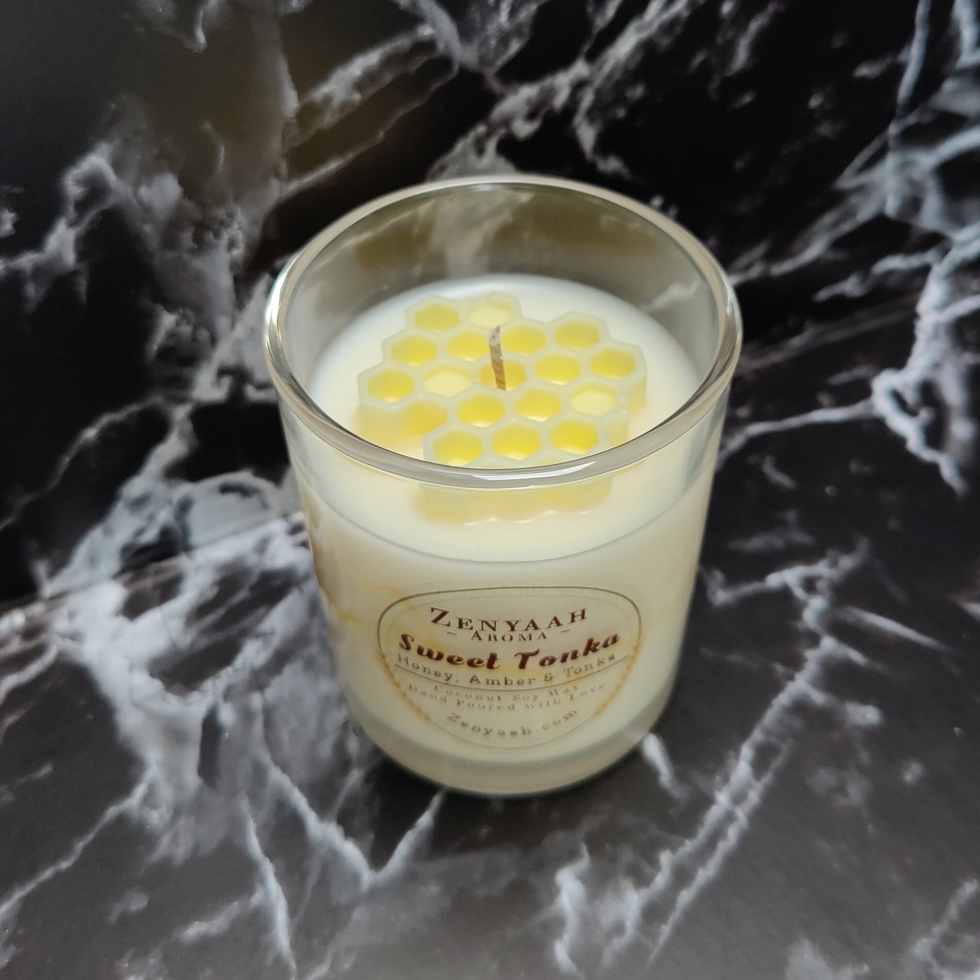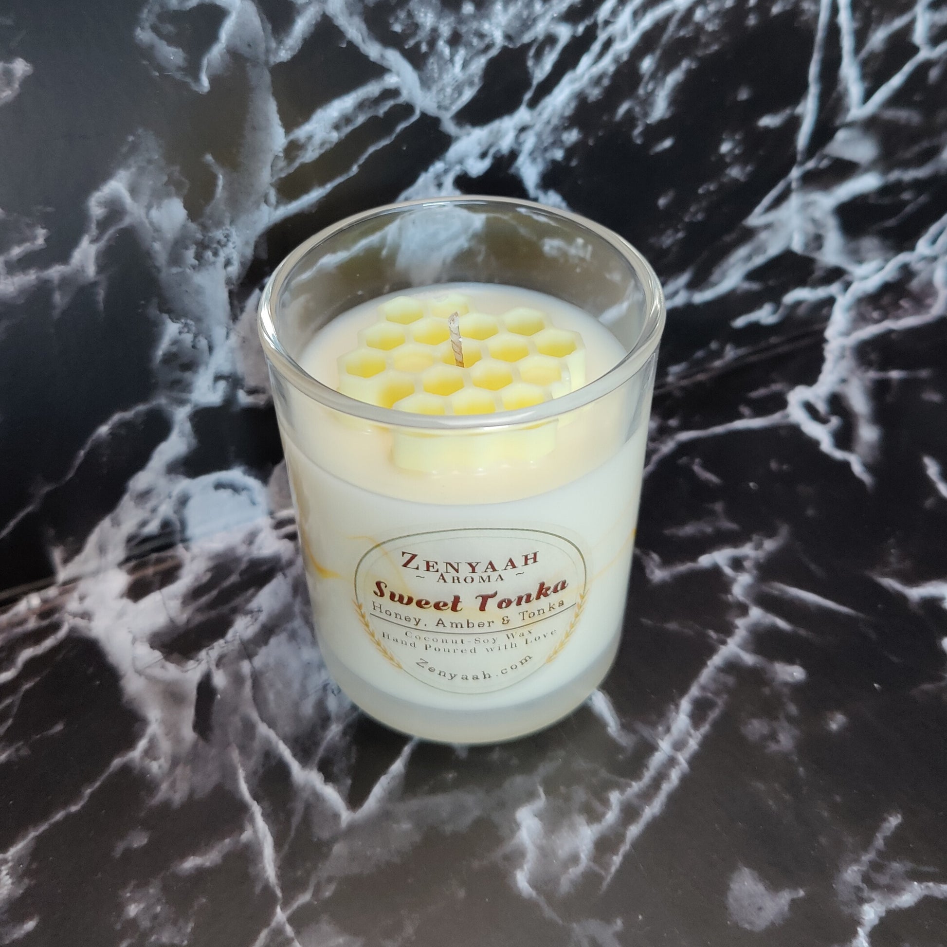 Immerse yourself in the warm embrace of our artisanal candle, meticulously crafted to elevate your space and enchant your senses. Crafted with utmost care from sustainably sourced and eco-friendly coconut-soy wax, this candle reflects your commitment to both well-being and the environment. Prepare to be captivated by the harmonious blend of Honey, Tonka Beans, and Amber natural fragrances, a symphony that conjures images of a cozy evening by the fireplace.