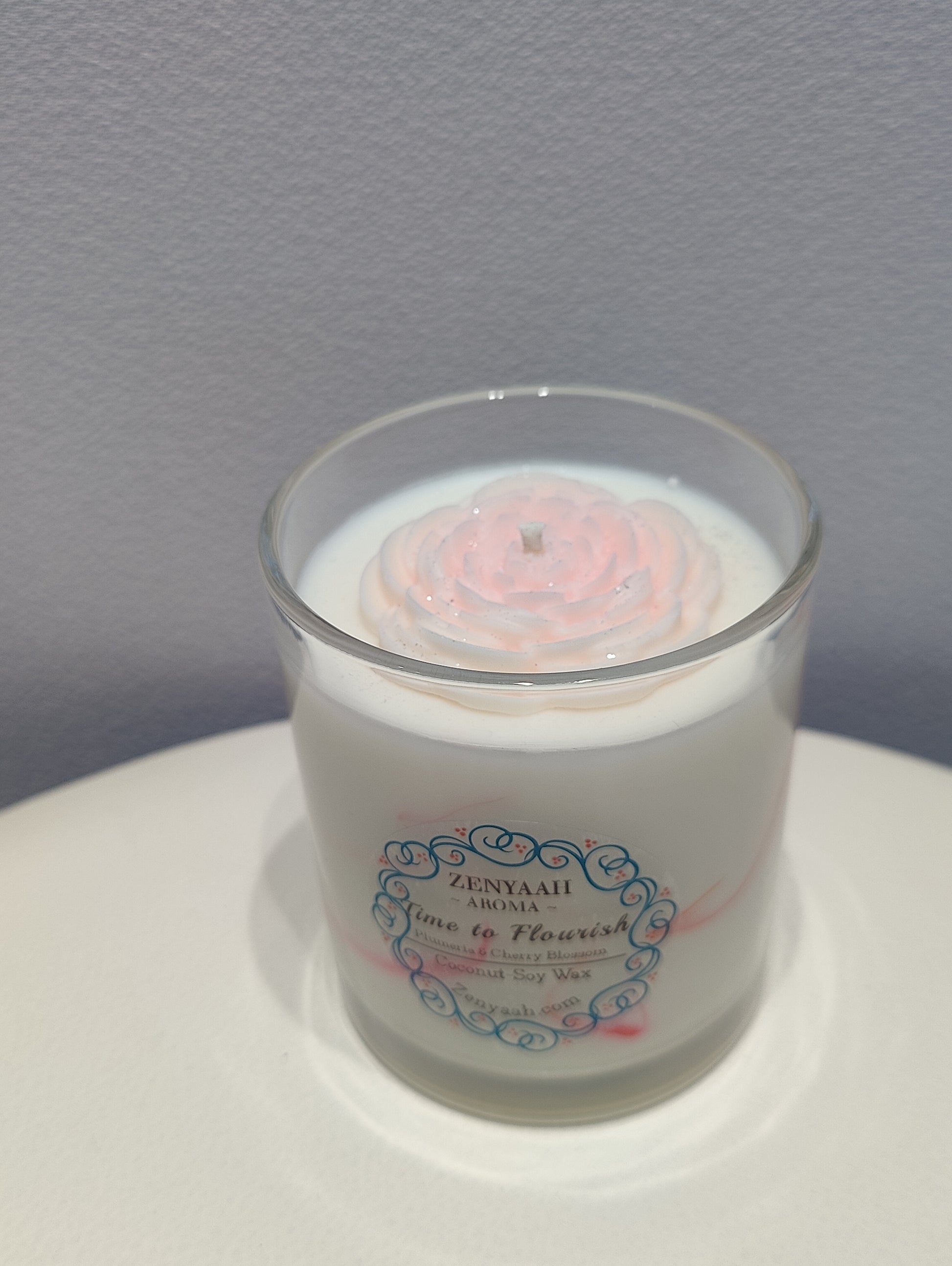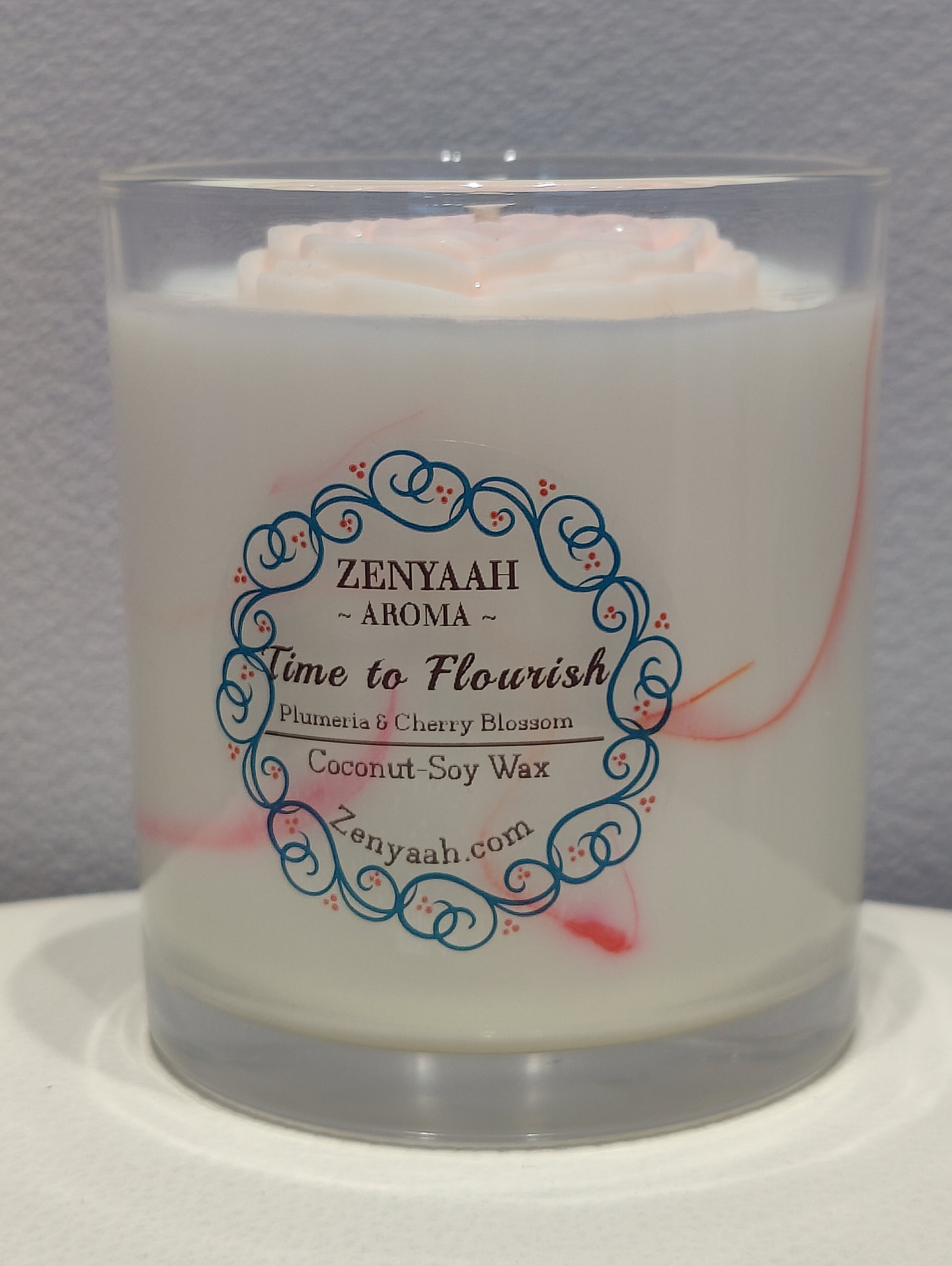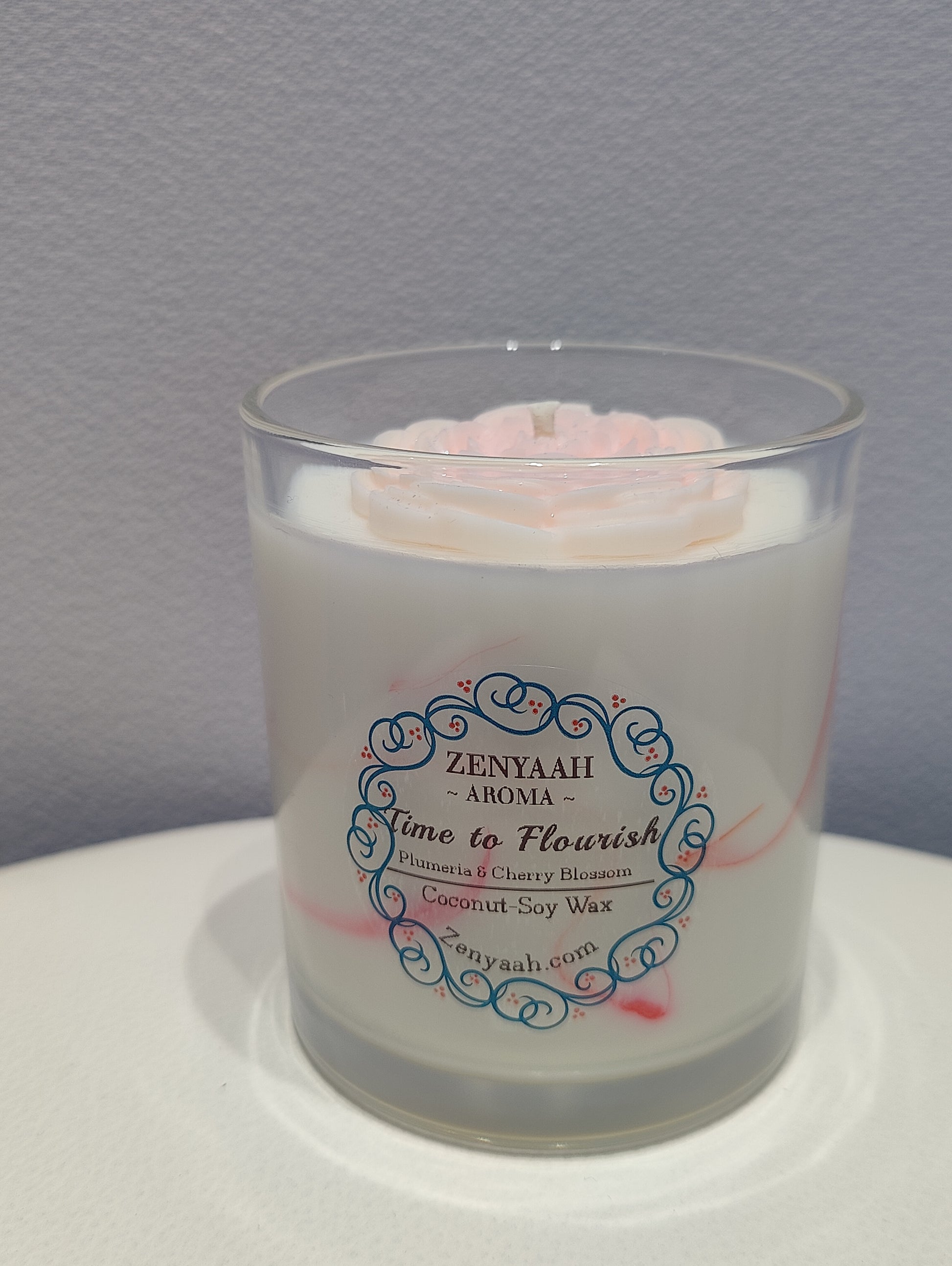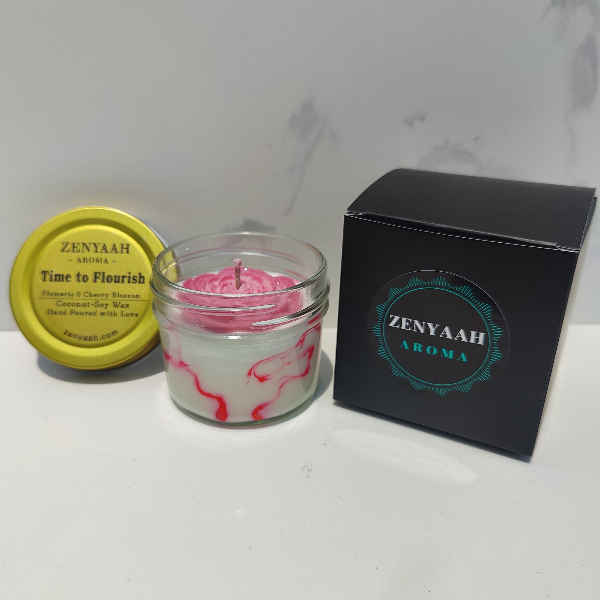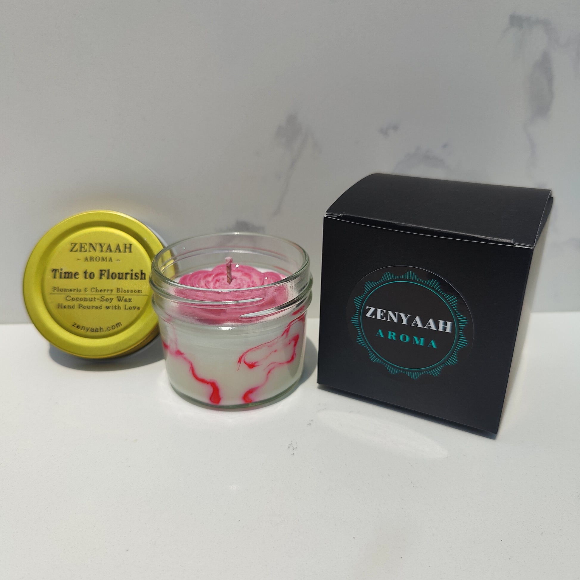 Embark on a sensory journey like no other with our meticulously hand-crafted candle, delicately curated to elevate your space and tantalize your senses. Crafted with utmost care, this exquisite gem is made from sustainably sourced and eco-friendly coconut-soy wax, a testament to our commitment to your well-being and the planet. Immerse yourself in the captivating fusion of Plumeria and Cherry Blossom natural fragrances, a divine symphony that transports you to a blooming paradise.