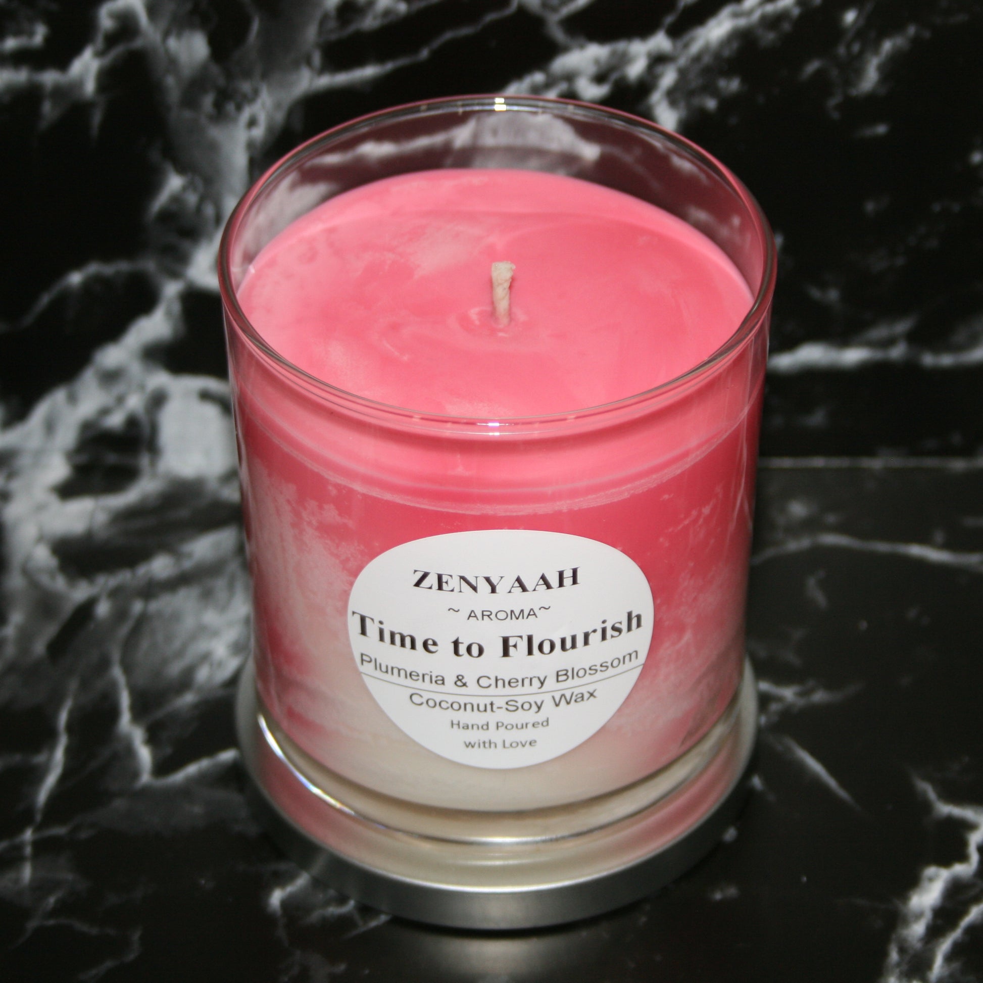 Illuminate your space with the gentle glow of this hand-crafted treasure, as the intoxicating scents dance in the air, creating a haven of bliss and serenity. Experience the magic of our sustainably crafted creation, where nature's finest fragrances and artful design unite to create an irresistible ambiance. Let the exquisite blend of Plumeria and Cherry Blossom transport you to a world of floral enchantment, enveloping your senses in sheer delight. Elevate your surroundings with this extraordinary candle, a true masterpiece that invites you to escape into a realm of beauty and tranquility.